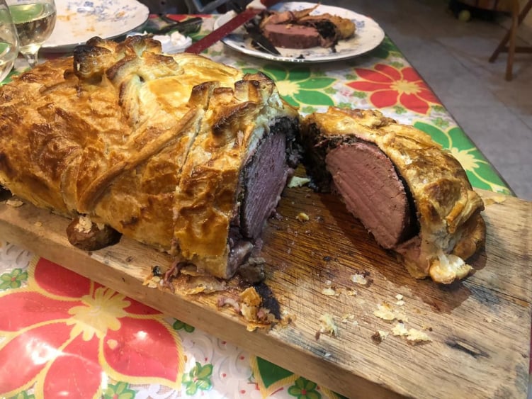 El relleno está preparado con carne de res 80% y 20% de cerdo, tocino, frutas secas,